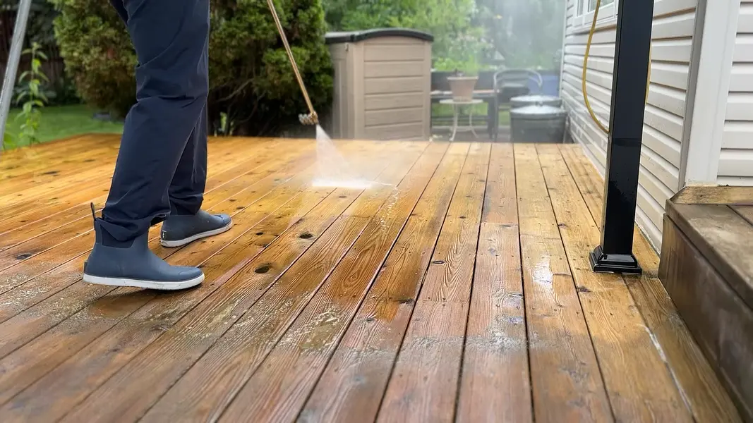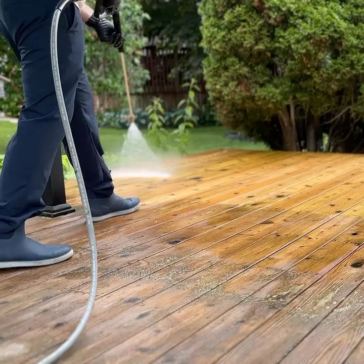 Professional deck cleaning to remove dirt, algae, and buildup from wood and composite surfaces—restoring a clean, safe finish.